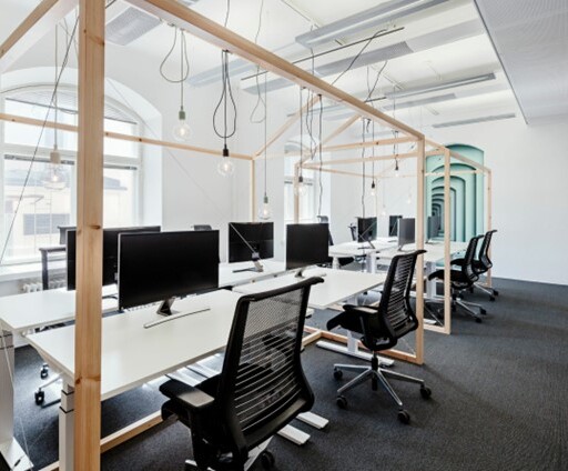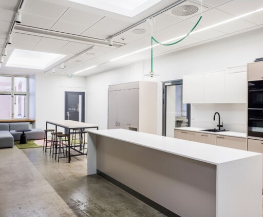 Katutason siisti ja kompakti toimistotila.