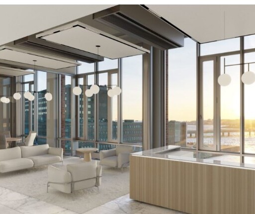 Pääkonttoritasoinen koko 3. kerroksen käsittävä toimistotila merinäköalalla. Ikkunat ulottuvat lattiasta kattoon. Huonejako muokattavissa toiveiden mukaiseksi ja tila on myös tarvittaessa laajennettavissa (975/1650/2625m²).