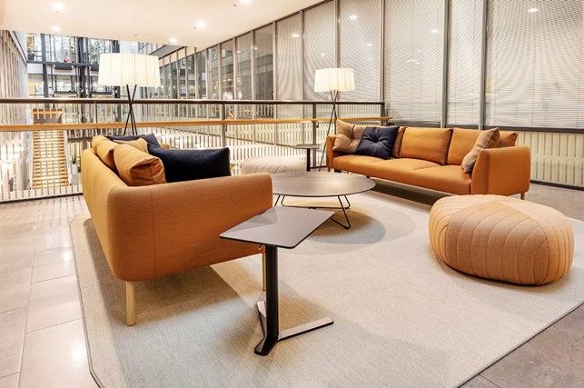 Uudistettua toimistotilaa: Tiloissa mm. tekstiilipalamatot, omat toimivat taukokeittiöt vinyylilankkulattioin, wc:t, energiatehokas led-valaistus.
