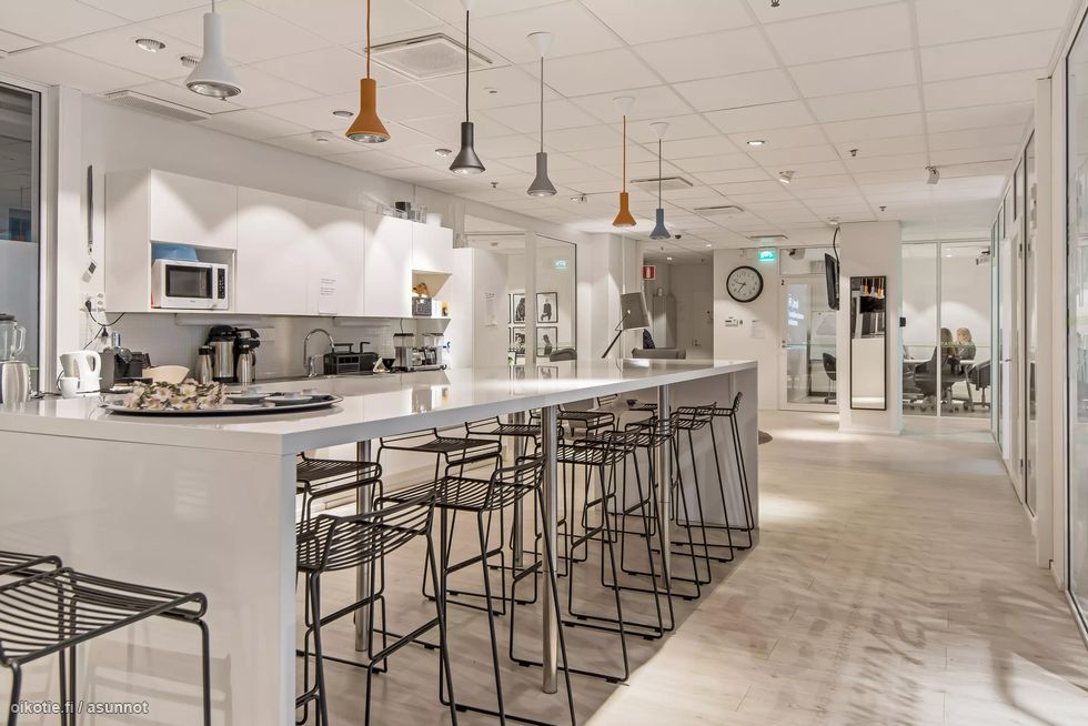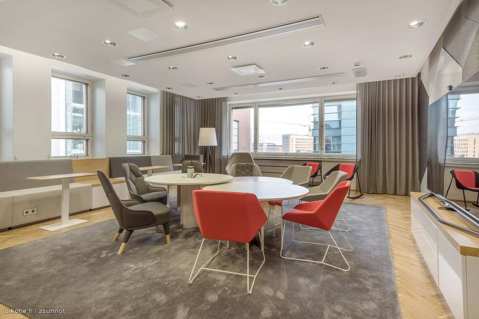 Kuudennen kerroksen toimisto, joka taipuu moneen. Toimistosta löytyy avoalueita, erillisiä huonetiloja, sekä kaksi wc-tilaa ja siivouskomero, mutta tila on tarvittaessa varsin muuntojoustava. Uusi upea keittiö, jossa voi luontevasti kokoontua.