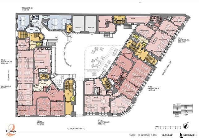 Helsingin vanhimpiin kuuluva rakennuskokonaisuus on rakennettu kolmessa vaiheessa vuosina 1891, 1905 ja 1915. Se peruskorjattiin huolellisesti vuonna 2021 sekä nykyaikaa että kohteen poikkeuksellisia elementtejä kunnioittaen. Upea kokonaisuus muodostuu tänä päivänä kahdesta rakennustyylistä – jugend ja uusrenessanssi, jotka muodostavat upean kortteliosan yhdessä eloisan sisäpihan kanssa. Tehokas nykyajan työskentely luonnistuu uudistetuissa, uniikeissa toimitiloissa ja tilat taipuvat monenlaiseen työskentelyyn mahdollistaen mm. yhteisöllisyyden edistämisen sekä ryhmässä innovoinnin.