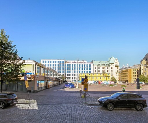 Kahdesta tilasta koostuva liiketilakokonaisuus, joka avautuu Kasarmitorille. Jaettavissa pienempään kulmatilaan noin 210m2, ja suurempaan, noin 460m2 tilaan, jolloin tiloilla on jaetut wc-tilat. Mahdollista vuokrata lisäksi kellarista taukotilaa.