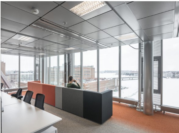 Monitilatoimisto merinäköalalla. Valoisassa tilassa on suuret ikkunat kolmeen suuntaan. Tilaratkaisu on muutettavissa asiakkaan toiveiden mukaiseksi.