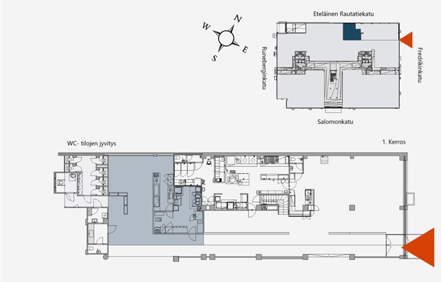 N. 116,5 m2 tilakokonaisuus sisältää oman valmistuskeittiö mahdollisuuden, jossa rasvakanava- ja rasvakaivovalmiudet ovat jo olemassa. Tila sijaitsee ns. Ravintolamaailman sisäosassa, ei ikkunoita suoraan Fredrikinkadulle.