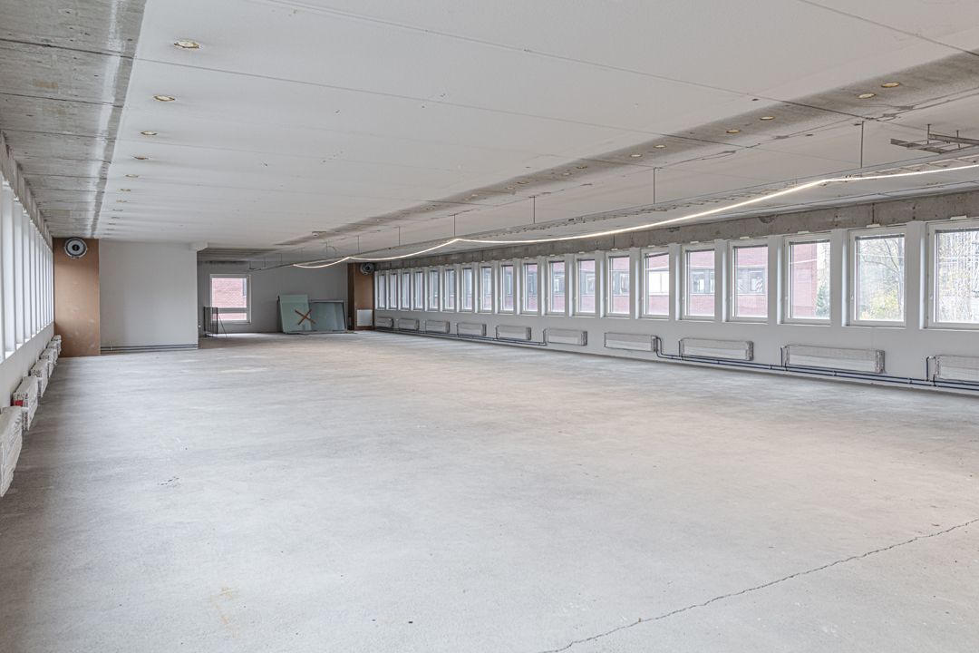 Katutason toimistohuoneisto, josta ikkunat sisäpihan suuntaan.